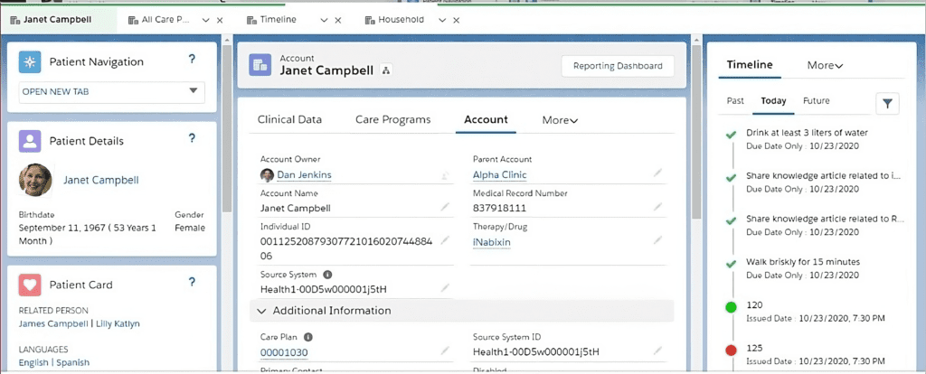 Health Cloud not only empowers care teams to collaborate more intelligently across entire patient cohorts, expediting insightful care delivery, but its “Today” page elevates productivity by presenting provider tasks prioritized for efficiency. Moreover, providers can categorize patients—like those managing high blood pressure—and assign tasks accordingly. Seamlessly mapping a patient’s entire support network, both personal and professional, Health Cloud fosters secure and private communication among caregivers, facilitating collaborative care.
